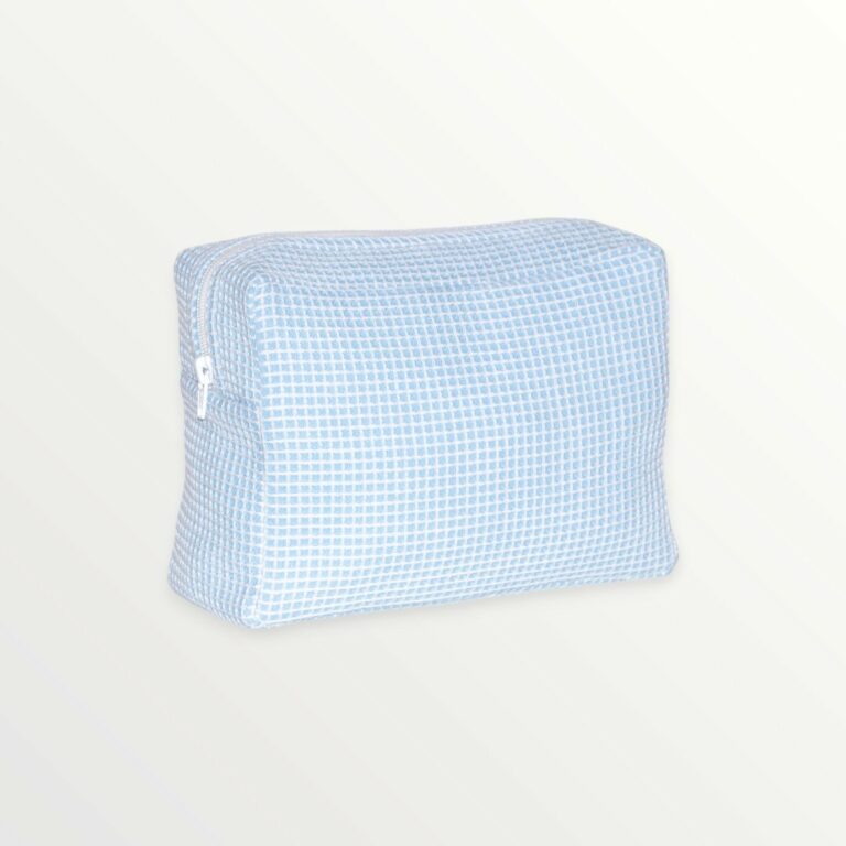 Trousse à base ronde en coton gaufré motif nid d’abeille.